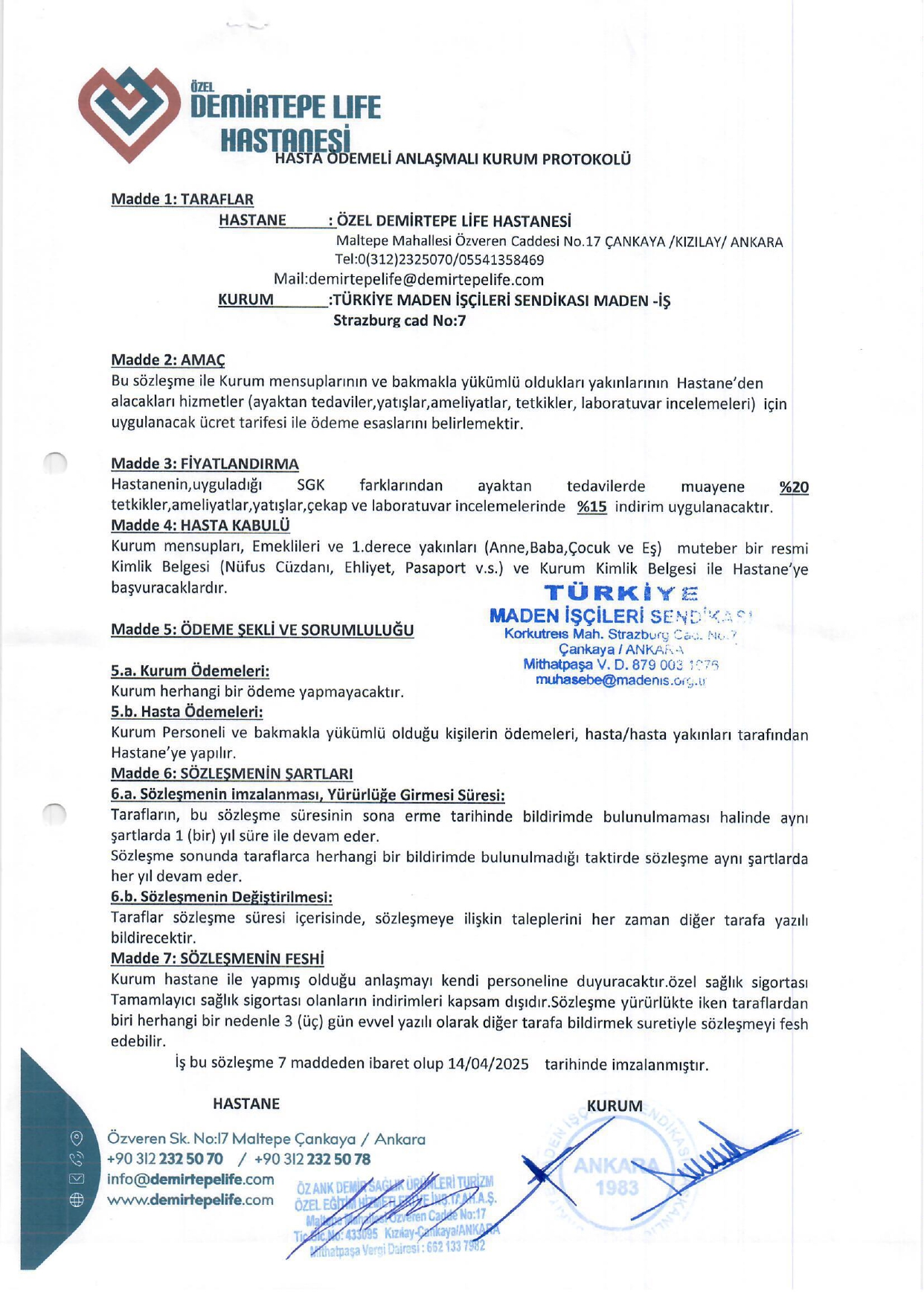 HABER / DUYURU Demirtepe Life ile Sendikamız Arasında Sözleşme İmzalandı Türkiye Maden İş Sendikası - 24.04.2025 13:06:56