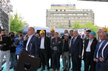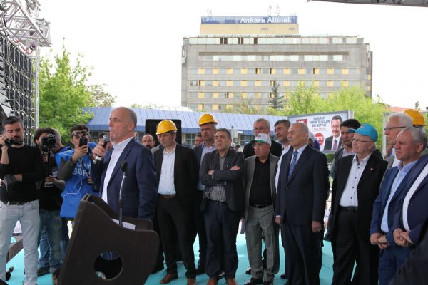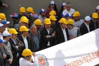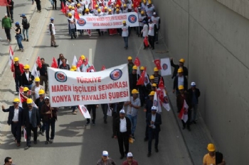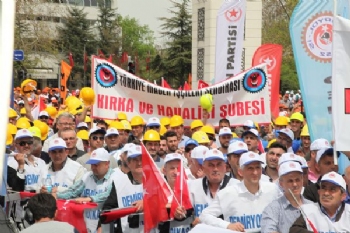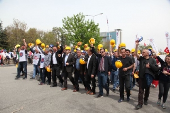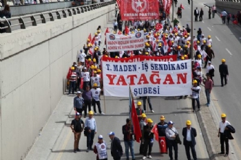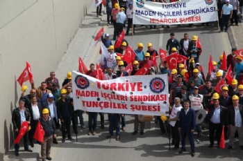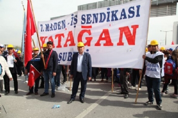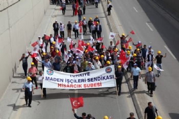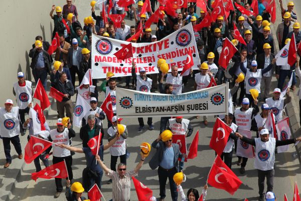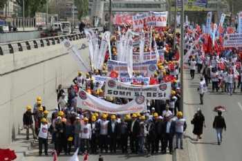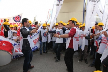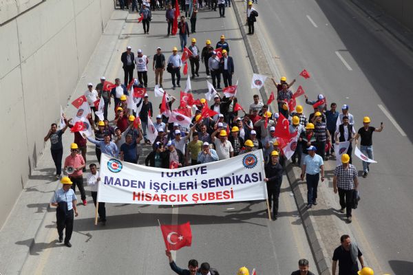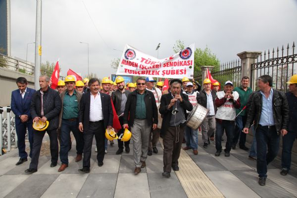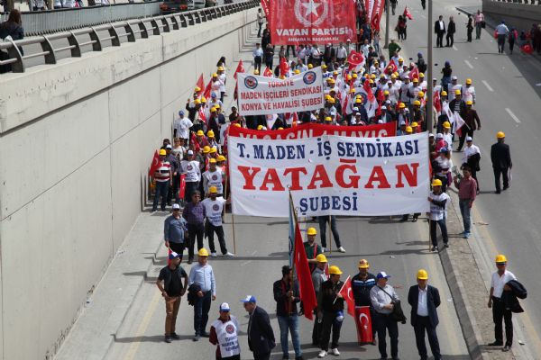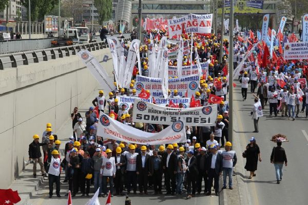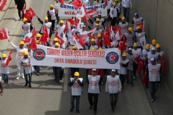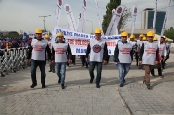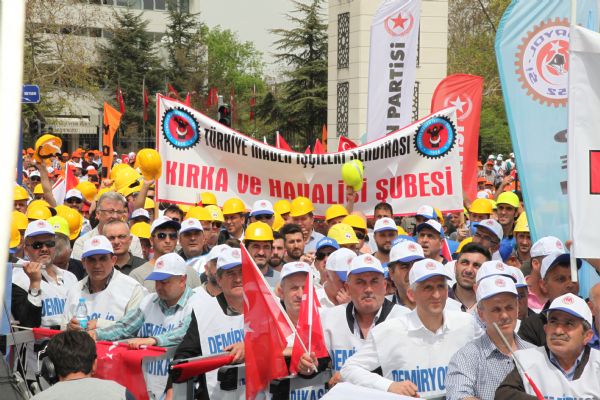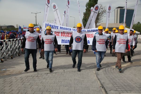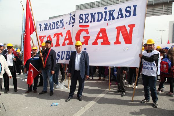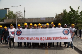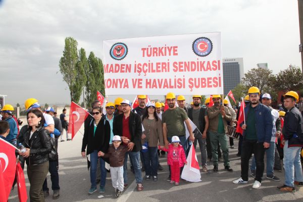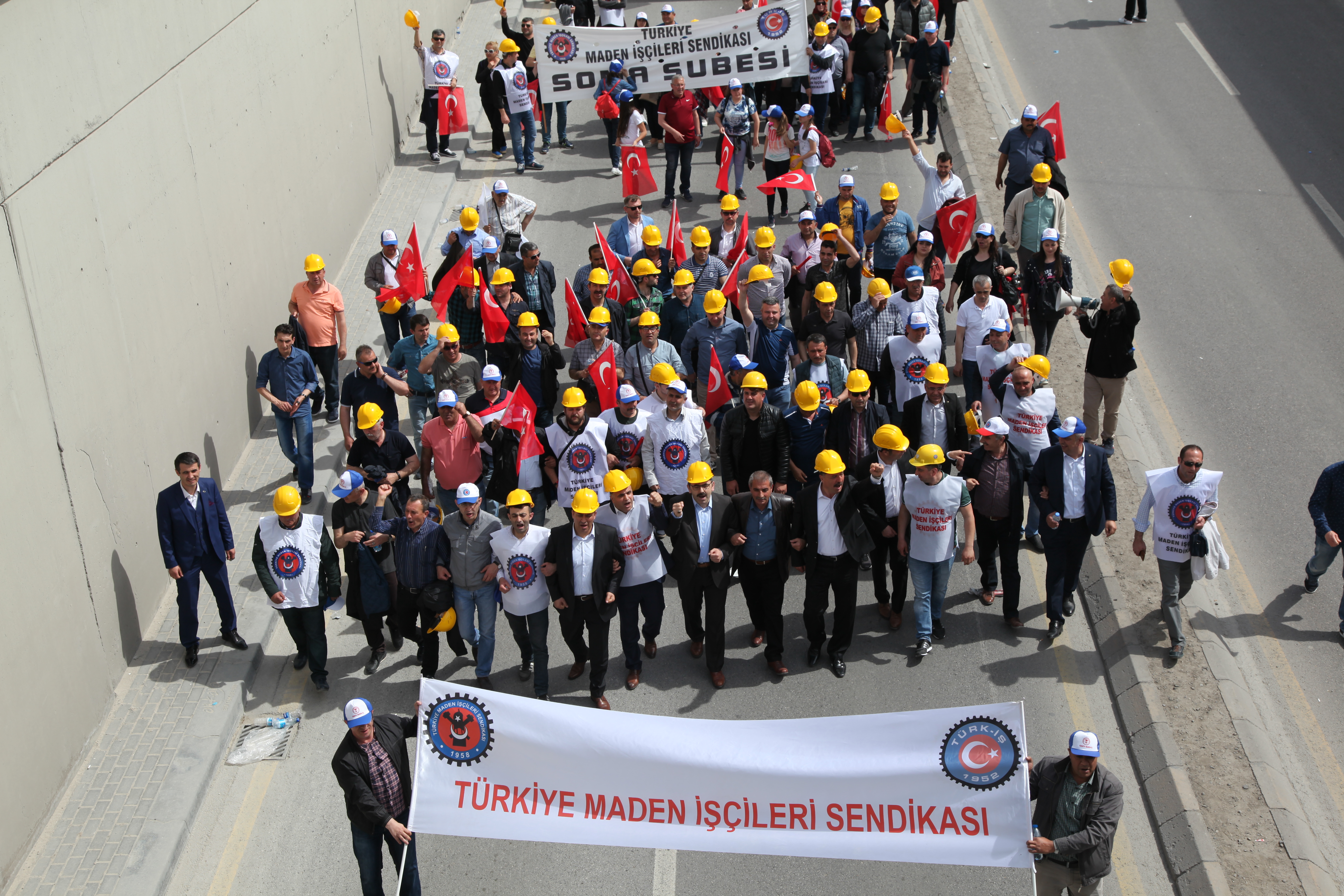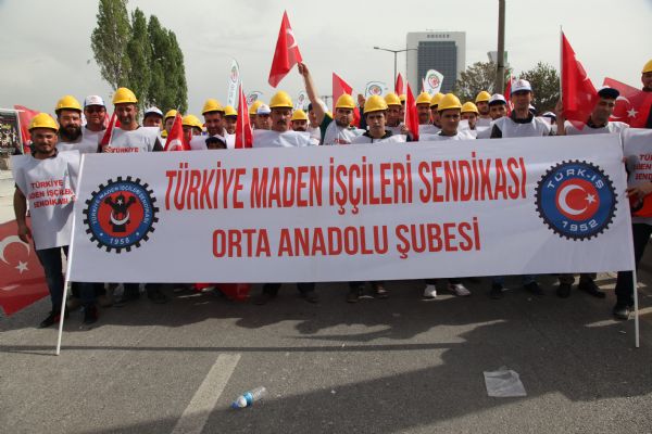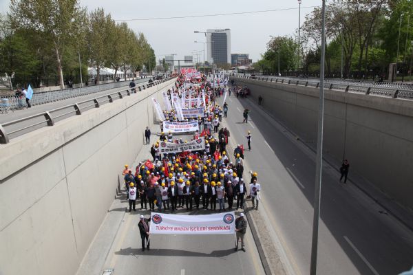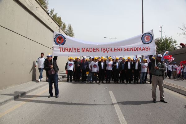 Emekçiler sabahın ilk saatlerinde bir araya gelerek, kortej halinde Ankara Tandoğan meydanına geldi. Çeşitli pankart ve dövizleri taşıyan işçiler, 'Yaşasın 1 Mayıs', 'Kıdem tazminatı kaldırılamaz', 'Taşeron işçiliğe hayır' sloganları attı. Madenci üyelerimiz alana girdiğinde diğer sendikalara bağlı işçiler, üyelerimizi alkışlayarak ve bayraklarla karşıladı.