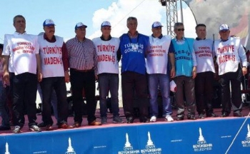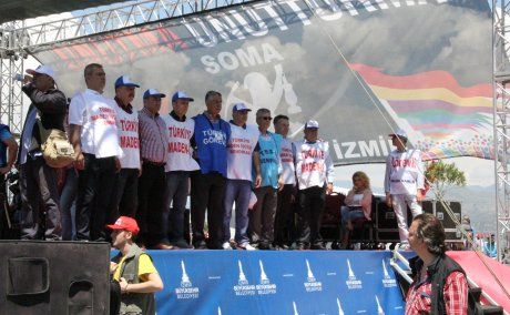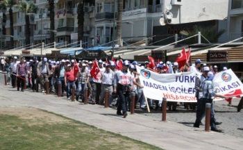 Ege Bölgesi Şubemiz yönetimi İzmir'e hareket etmeden önce, üyelerimizle birlikte maden şehitlerimizin mezarlarını ziyaret ederek dua etti. Buradaki ziyaret töreninin ardından sendikamız Genel Merkez ve Ege Bölgesi şubesi yöneticileri üyelerimizle birlikte İzmir'e hareket ederek Gündoğdu meydanındaki mitinge katıldılar.