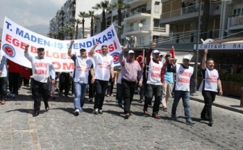 Sendikamızın en yoğun kitlesel katılım sağladığı 1 Mayıs kutlama merkezi ise İzmir oldu. İzmir Gündoğdu meydanındaki kutlamalara Ege Bölgesi Şubemiz, Hisarcık şubemiz ile Kütahya şubemizden üyelerimiz katıldı. İzmir'deki 1 Mayıs yürüyüş ve mitingine sendikamız genel merkez yönetiminden Genel Sekreter Tamer Küçükgençay, Genel Mali Sekreter Zekeriya Aydın, Genel Teşkilatlandırma Sekreteri Yasin Karatay, Genel TİS ve Mevzuat Sekreteri H.Hüseyin Gürbüz ile Genel Eğitim ve Araştırma Sekreteri Ahmet Çümen katıldı.