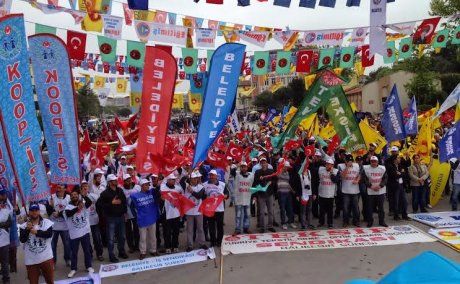 Türk-İş Başkanlar Kurulu'nun aldığı karar gereği, Türk-İş'in bu yıl 1 Mayıs kutlaması için merkez olarak seçtiği yer Zonguldak'tı. Sendikamız Genel Başkanı Nurettin Akçul ile Genel Başkan Yardımcısı Gülahmet Güven'in de katıldığı Zonguldak'taki 1 Mayıs kutlamasına, sendikamız Çeltek, Ege Bölgesi,Yatağan ve Kırka şubelerinden otobüslerle taşınan üyeler kitlesel olarak katıldı.Zonguldak'taki 1 Mayıs mitingine bazı şubelerimizin şube yöneticilerinin yanı sıra, Ege Bölgesi şubemiz başkanı Recep Satır da katıldı.