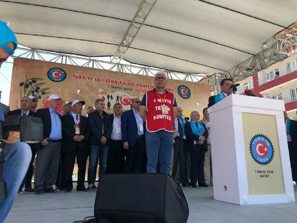 Daha sonra kürsüye gelen Türk-İş Genel Başkanı Ergün Atalay, “2015’te Soma faciasına dikkat çekmek için Zonguldak’taydık, 2016’te birlik ve beraberliğimize vurgu yapmak amacıyla Çanakkale’ye gittik. Geçen sene ise demokrasi vurgusuyla Ankara’da yaptık 1 Mayıs’ı. Bu sene ise ulusumuzun meşru müdafaa hakkına dikkat çekmek ve Zeytin Dalı Operasyonu’na destek vermek amacıyla Hatay’dayız” dedi. Hatay’ın huzur ve barış kenti olduğunu vurgulayan Atalay, burada kardeşliğin ve bir arada yaşama iradesinin umutları artırdığını söyledi.