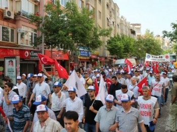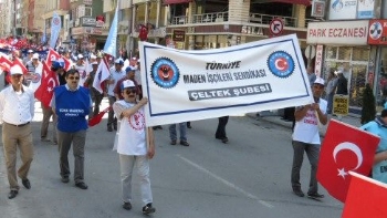 1 Mayıs Emek ve Dayanışma Günü, Bursa'da coşkuyla kutlandı. Bu coşkuya sendikamız Bursa şubesi de ortak oldu. Bursa Şube Başkanı Hüseyin Ergen, şube yönetim kurulu üyeleri ve şubemiz üyesi madenciler de alanda yerlerini aldılar. Atatürk Stadyumu önünde toplanarak yürüyüşe başlayan sendikalar, sivil toplum örgütleri ve siyasi parti üyeleri, sloganlar atarak Darmstad Caddesi üzerinden Kent Meydanı'na ulaştı. Kent Meydanı'nı dolduran kalabalık, şarkılar eşliğinde 1 Mayıs İşçi Bayramı'nı kutladı. Türk-İş, Kamu Emekçileri Sendikaları Konfederasyonu(KESK), Türk Mühendis ve Mimar Odaları Birliği'ne(TMMOB) bağlı odalar ile Türk Tabipleri Birliği'nin öncülüğünde düzenlenen kutlamalarda polis geniş güvenlik önlemi aldı.