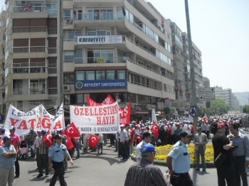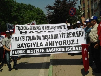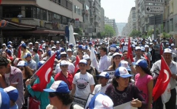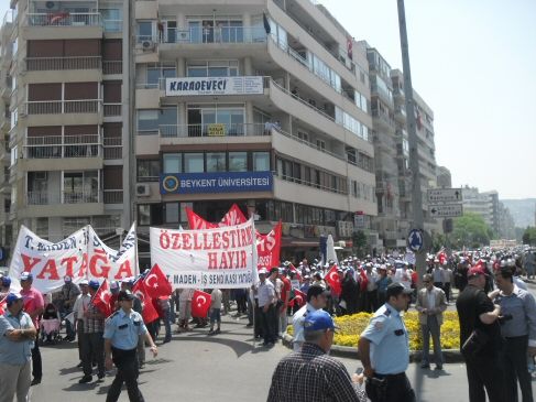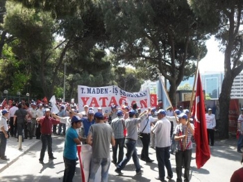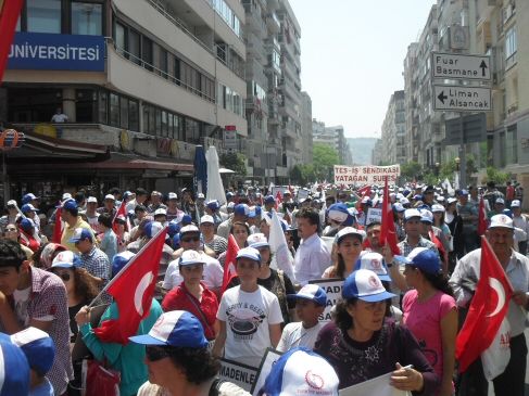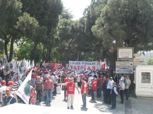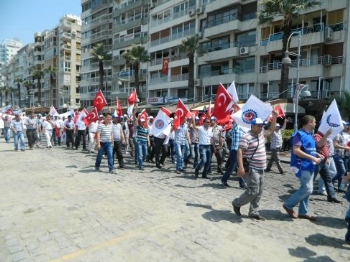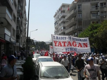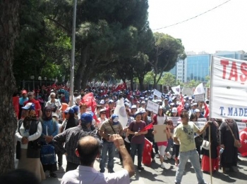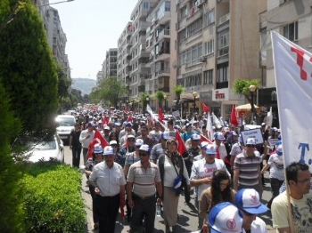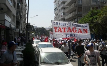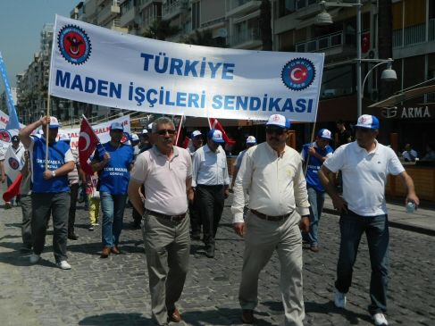 Sendikamızın en kitlesel katılımı İzmir'deki yürüyüş ve mitingde oldu. İzmir Gündoğdu Meydanı'ndaki kutlamaya Soma, Yatağan, Kütahya ve Hisarcık şubelerimiz katıldı.