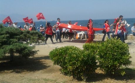 Sabah saatlerinde şube binası önünde toplanan sendikamız Yatağan Şubesi üyelerimiz 1 Mayıs'ı aileleriyle birlikte İzmir'de kutladı. İzmir'de Basmane'den Gündoğdu Meydanı'na kadar davul ve zurna eşliğinde halaylar çekip sloganlar atarak kortej oluşturan maden ve enerji işçileri Gündoğdu Meydanı'nda Barikat Çocukları ve Özelleştirme Karşıtı Direniş Simgesi Emekçiler Geliyor anonslarıyla alkışlarla karşılandı. Güneşli bir günde gerçekleşen kutlamaya sendikamız Yatağan şubesi üyelerimiz de aileleri ile birlikte coşkulu bir katılım sağladı.