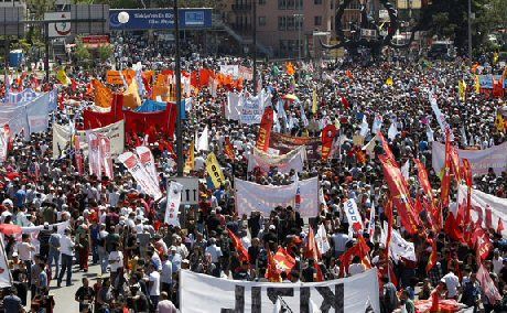 1 Mayıs Emek ve Dayanışma Günü Eskişehir Taksim'de İstanbul'dakinin aksine polis ve biber gazı olmadan kutlandı.