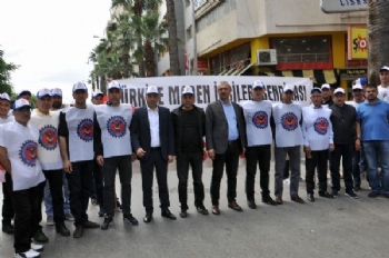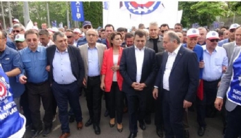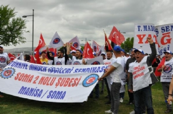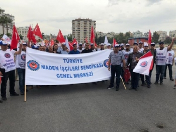 Kortejler halinde miting alanına giren üyemiz işçiler pankartlar açarak birlik, beraberlik ve mücadele mesajı verdi.