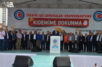 Kıdem için Kocaeli'de olduklarını dile getiren Atalay, "Bu alandan Türkiye'yi yönetenlere sesleniyorum. Bu alandan Meclis'e, kamuoyuna sesleniyorum. 3 bin lira brüt ücret alan bir kardeşimiz 250 lira yemek parası, 250 lira yol parası, 3 bin 500 lira. Bu kardeşimiz 25 sene çalışabilirse alacağı kıdem 86 bin lira. TOKİ'den alt gelir grubuyla ilgili en düşük 50 metrekarelik konut 116 bin lira. Kıdem ile ilgili olumsuz bir çalışma yapmayın. Kıdemle ilgili nokta kadar geriye gidecek bir çalışma yapmayın. Kıdem bizim kızımızın çeyiz parası, oğlumuzun düğün parası. Kıdem bizim nefes almamızı sağlıyor, duymamızı sağlıyor. Kıdem bizim görmemizi sağlıyor. Bazı art niyetli işverenler doymak bilmiyor. İyi niyetli olanlara Allah daha da kazandırsın. Kıdemle ilgili 17 milyon çalışan var. Bu ülkede kıdemle ilgili olan insan sayısı 40 milyon. Bu ülkenin yarısıyız. Buradan bir daha sesleniyorum. Kıdemin nokta kadar geri gidişini aklınıza getirmeyin. Mevcut yapıya nokta kadar dokundurmayız. Fon diyorlar, Size de ailenize de buradaki genel başkanlara da bana da fenalık geliyor. Geçmişte fonların akıbetini biliyoruz. Fon lafını ülke gündeminden çıkartın, her ramazan ayı gibi her sene kıdemi ülke gündemine getirmeyin. İş yerlerinde verimimiz düşüyor, evimizde huzurumuz kaçıyor. Huzurumuzu bozmayın, verimimizi düşürmeyin. Buradan ülkeyi idare edenlere sesleniyorum, Kıdem bizim son kalemiz, 'nokta' diyecek başka bir şey yok, haberiniz olsun" dedi.