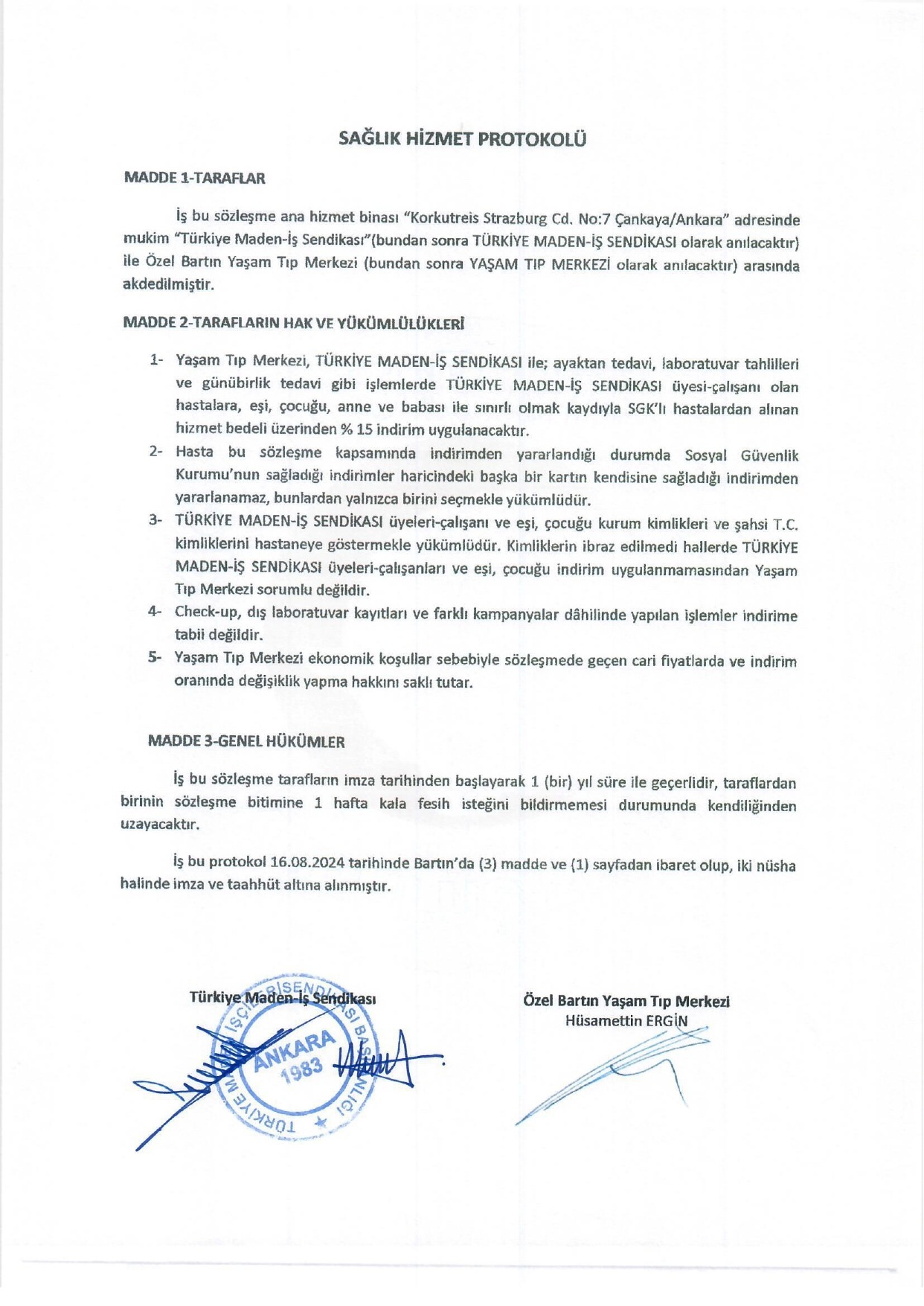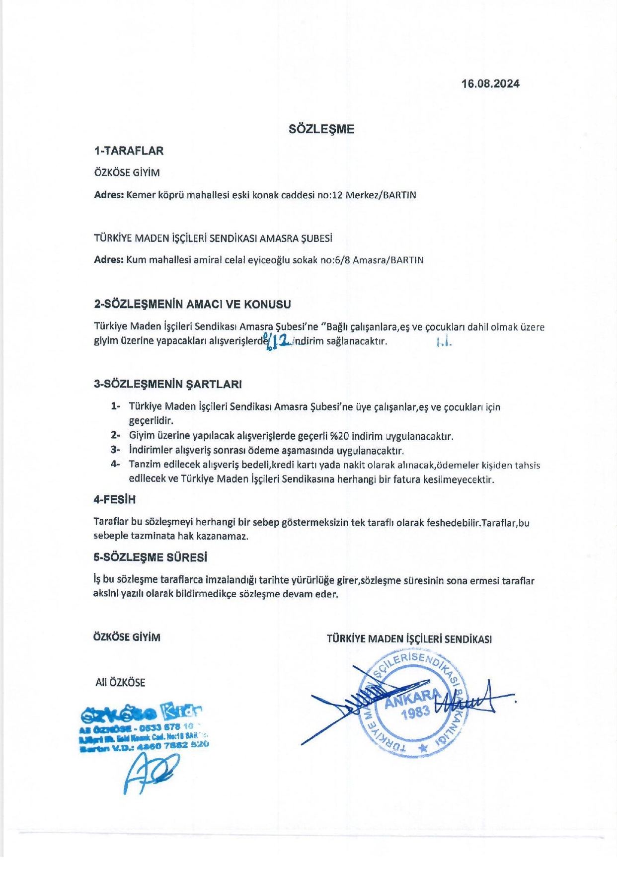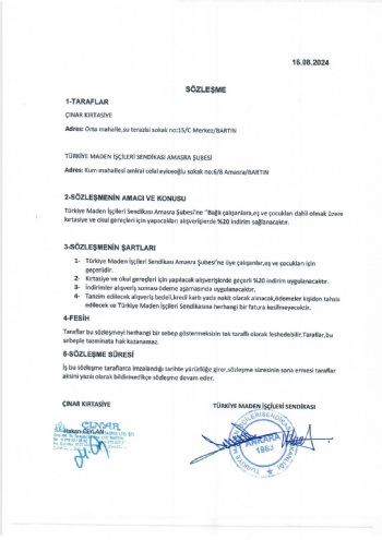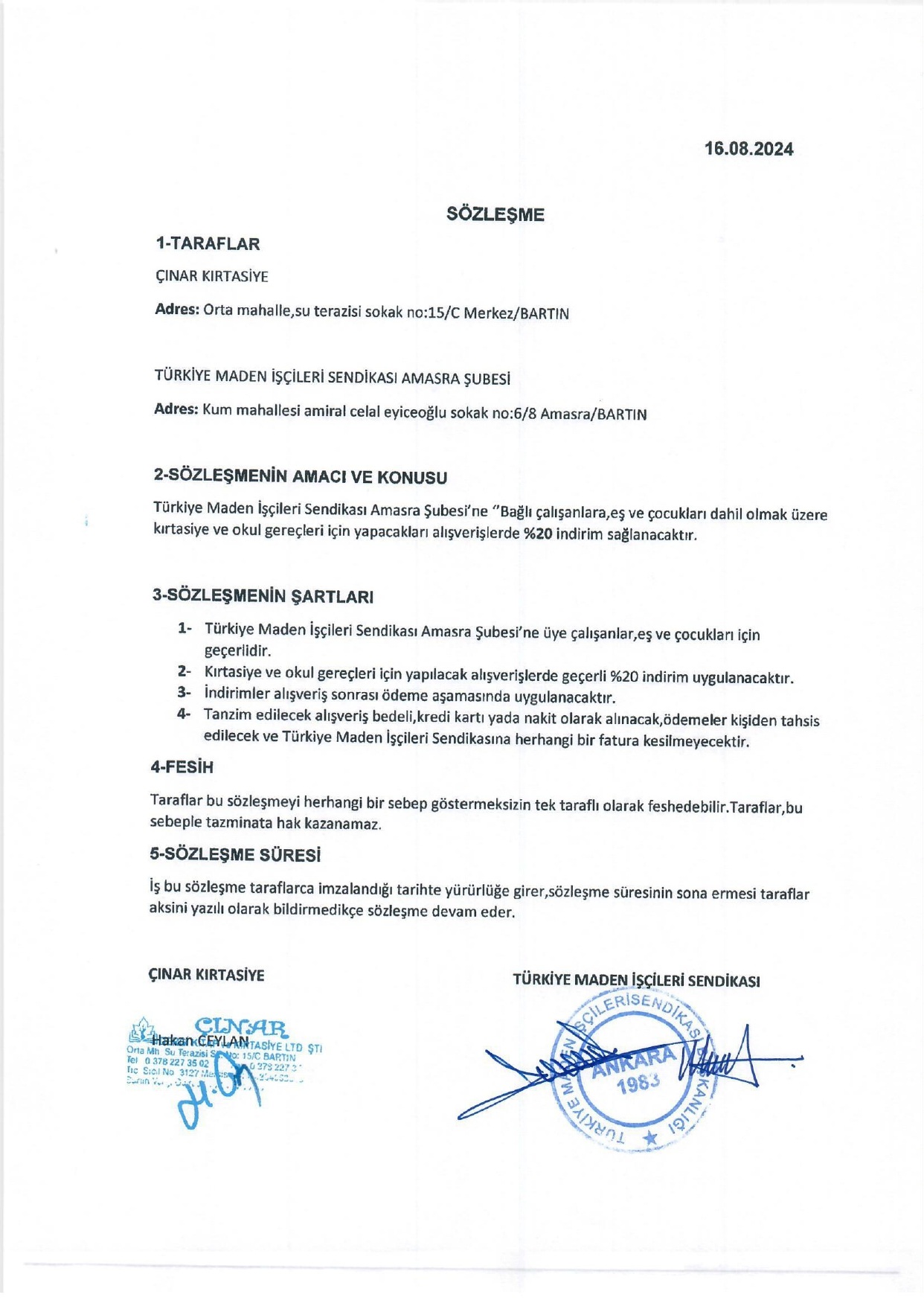Sendikamız Amasra Şubesi; Çınar Kırtasiye, Özel Bartın Yaşam Tıp Merkezi ve Özköse Giyim ile protokol imzaladı. Sözleşmelere göre üyelerimiz, aldıkları hizmet karşılığında indirimli ücret ödeyecek.