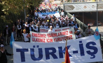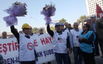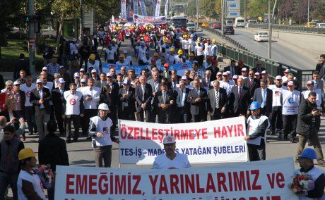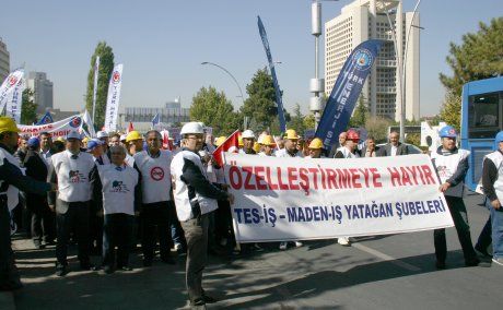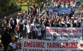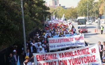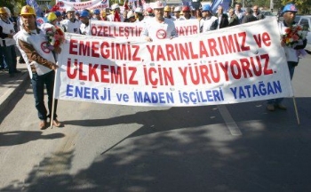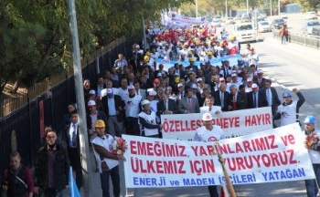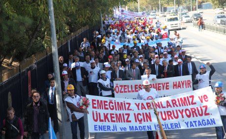 Muğla'daki Yatağan, Yeniköy ve Kemerköy termik santralleri ile kömür sahalarının özelleştirme kapsamına alınmasını protesto için Yatağan'dan Ankara'ya yürüyen maden ve enerji işçileri, dört günlük yürüyüşün ardından Ankara'ya ulaştı.