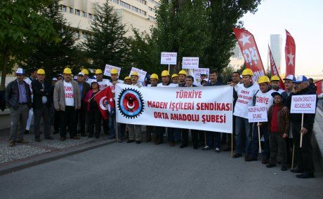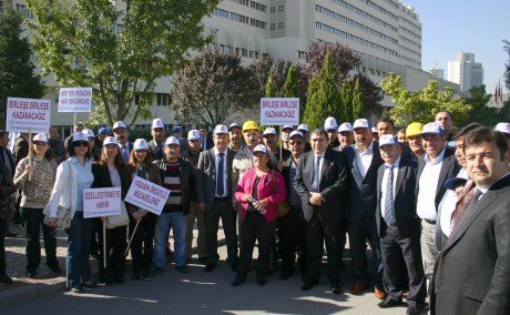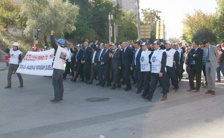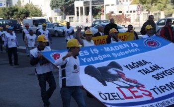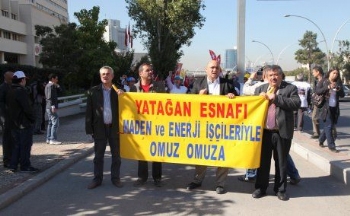 'Ölmek var, dönmek yok','Sat bakalım, sat baktalım Yatağan'ı sat bakalım', 'Kitler vatandır, vatan satılmaz' sloganları eşliğinde yürüyen işçiler, Enerji ve Tabii Kaynaklar Bakanlığı'nın kapısına baretlerini asarak, tepkilerini gösterdi.