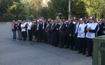 TBMM Dikmen Kapısı önüne gelindiğinde basın açıklamasını Sendikamız Genel Başkanı Nurettin Akçul yaptı. Basın açıklamasında özelleştirme politikalarının işçiler ve halk üzerinde yaratacağı sonuçlara dikkat çekildi. Özelleştirmenin iptali yönünde bir karar çıkmaması halinde çok daha kalabalık, gerekirse bir kent olarak yürüneceği belirtildi.