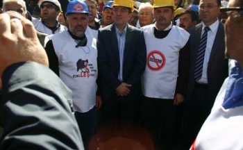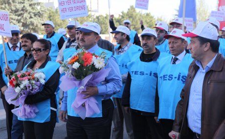 Türk-İşGenel Mali SekreteriRamazan Ağar, Genel Maden-İş Genel Başkanı Eyüp Alabaş, Tes-İş Genel Başkan Yardımcısı Hasan Tahsin Zengin ve İzzet Çetin, Süleyman Çelebi, Mahmut Tanal, Dilek Akagün Yılmaz başta olmak üzere CHP milletvekilleri de işçileri karşılamak üzere hazır bulundu.