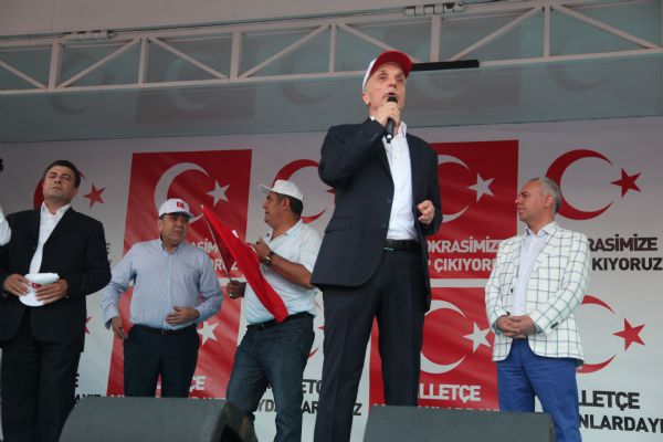 ““Bizim için demokrasi; ekmek kadar, su kadar, hava kadar önemli. Türkiye’de yapılan tüm darbelerin tek kaybedeni var, o da emekçiler. Demokrasi olmadan sendikalar olmaz, kitle örgütleri olmaz, demokrasi olmadan yaşam olmaz. Yarabbi bizi Kur-an’sız, bizi Ezansız, bizi Vatansız, bizi Bayraksız bırakma.