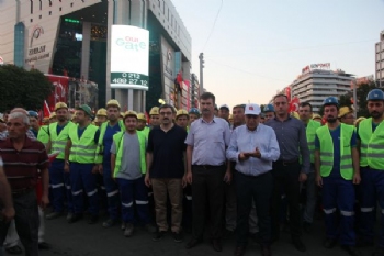 Genel Başkan Atalay’ın konuşmasının ardından İşçiler, Kızılay meydanına doğru, darbe karşıtı sloganlar eşliğinde yürüyüşe geçti. Kızılay meydanında toplanmış yüzlerce kişiyle buluşan işçiler burada da bayraklarıyla ve sloganlarıyla darbe girişimini protesto etti.