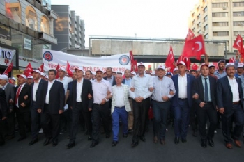 Üst konfederasyonumuz Türk-İş bünyesinde düzenlenen protestoya sendikamız adına Genel Başkanımız Nurettin Akçul, Genel Başkan Yardımcısı Gülahmet Güven, Orta Anadolu Şube Başkanı Kazım Karakoç ve şube yönetimi, sendikamız genel merkez çalışanları ve sendikamıza bağlı üye işçiler katıldı.