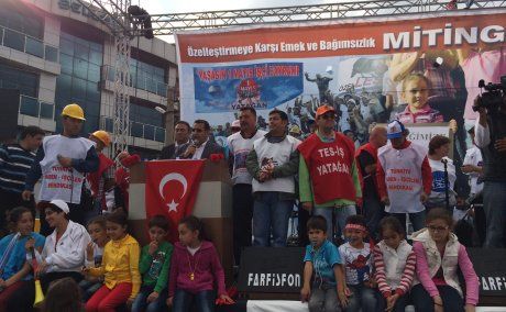 8 aylık direniş sürecinde onlara bunu gösterdiniz. İşyerlerinizin önünde gösterdiniz, yürüdünüz gösterdiniz, Ankara'ya geldiniz gösterdiniz, Meclis'e yürüdünüz gösterdiniz, Özelleştirme İdaresi'nin önünde direndiniz gösterdiniz.Tomalara, gazlara, mermilere rağmen gösterdiniz. Gösterdiniz ama hala anlamadılar. Bu işletmeleri birilerine bir odada ihale yaparak, aldım, verdim yapabileceklerini sanıyorlar. Sokaktaki, işyerindeki haklı direnişi hiçe sayıp odada, masada vereceklerini sanıyorlar.Kimin malını kime veriyorsunuz? Bu işletmeler bu halkın emeğiyle kuruldu. İşçilerin emeğiyle hayat buldu, kömür çıktı enerji oldu.Sizin verdim demenizle olacak mı? Hayır, arkadaşlar olmayacak. İşletmelerimizi verecek miyiz arkadaşlar? Onların verdim demeleriyle olmayacak. Bu özelleştirmeye karşı işletmelerimizi sonuna kadar sahip çıkacağız. Türkiye Maden İşçileri Sendikası olarak, başından beri sizlerin mücadelesinin yanında olduk. Her yerde yanınızda olduk.Sizler gaz yediniz, biz de yedik,