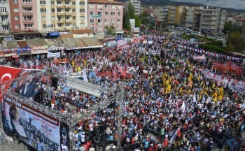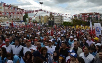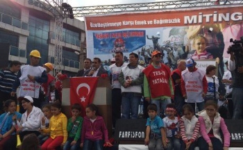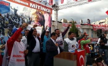 Kitlesel ağırlığını Yatağan'da 228 gündür özelleştirmeye karşı direnen sendikamız üyesi maden işçileri Tes-İş üyesi enerji işçilerinin oluşturduğu mitinge ayrıca, Soma'dan sendikamız üyesi maden işçileri, Tes-İş Sendikası üyesi enerji işçileri, İzmir'den Harb-İş Sendikası üyeleri ve Denizli Beyağaç'tan yeraltı maden işçileri de kitlesel katıldı. Garaj alanında yapılan coşkulu mitinge KESK, DİSK, TMMOB, ADD, CHP, İP, TKP, TGB ve Pir Sultan Abdal Derneği, Muğla Barosu, Tabip Odası veüyelerimizinaralarında bulunduğu yaklaşık 20 bin kişilik bir kitle katıldı.