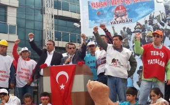 Şimdi bu santralleri üç beş para babasına peşkeş çekmeye kalkıyorlar. Santralve kömür ocaklarının kurulum maliyeti, taşınmazları ve mevcut kömür rezervi bitinceye kadar Devlet bütçesine girecek olan paranın ve bunların toplamının 1/6 (altıda biri) fiyatına bir yandaşa sattılar. 1 Mayıs kürsüsünden bir kez daha ilan etmek istiyoruz. Santralleri alanı da satanı da teşhir etmeye devam edeceğiz. Ve bu santralleri kimseye teslim etmeyeceğiz. Yatağan işçilerinin sürdürdüğü mücadele, yürüttüğü direniş meşrudur. Bu mücadele tüm Türkiye halkının vicdanında yerini bulmuştur. Buradan AKP iktidarını bir kez daha uyarıyoruz:Ateşle oynuyorsunuz, bizden hükümete söylemesi-hellip; Bu santrallerin satışında ısrar ederseniz, Haziran Direnişi'ni mumla ararsınız. Buradan santralleri üç kuruşa kapattığını zanneden firma sahiplerine de sesleniyoruz:İhaleleri kazanmış olabilirsiniz. Ama ihaleleri kazanmanız, bu santralleri ve madenleri işleteceğiniz anlamına gelmiyor. Yatağan, Milas işçisinin ve halkının memleketin mallarını üç kuruşa kapatmaya çalışanları nasıl karşıladığını bilmiyor olabilirsiniz. Biz geçtiğimiz günlerde size yaptığımız eylemlerle bunu hatırlatmaya çalıştık. Buraya gelmeyin. Buraya gelip santrallere girmeye kalkmayın. Niyetlenirseniz 2000'li yıllara, daha önce bu santralleri almaya kalkanların karşılaştıkları olaylara bakın.