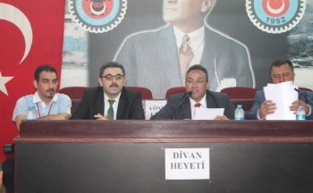 Genel Kurul divanı ise sendikamız genel başkan yardımcısı Gülahmet Güven, Genel TİS ve Mevzuat Sekreteri Hasan Hüseyin Gürbüz ile Genel Eğitim ve Araştırma Sekreteri Ahmet Çümen’den oluştu.