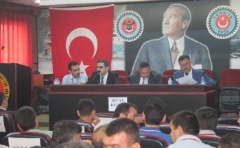 Sendikamız Ege Bölgesi konferans salonunda yapılan olağanüstü genel kurula, sendikamız Genel Başkan Yardımcısı Gülahmet Güven, Genel Sekreter Tamer Küçükgençay, Genel Mali Sekreter Zekeriya Aydın, Genel Teşkilatlandırma Sekreteri Yasin Karatay, Genel TİS ve Mevzuat Sekreteri Hasan Hüseyin Gürbüz, Genel Eğitim ve Araştırma Sekreteri Ahmet Çümen başta olmak üzere şube yöneticileri, işyeri temsilcileri ve delegeler katıldı.
