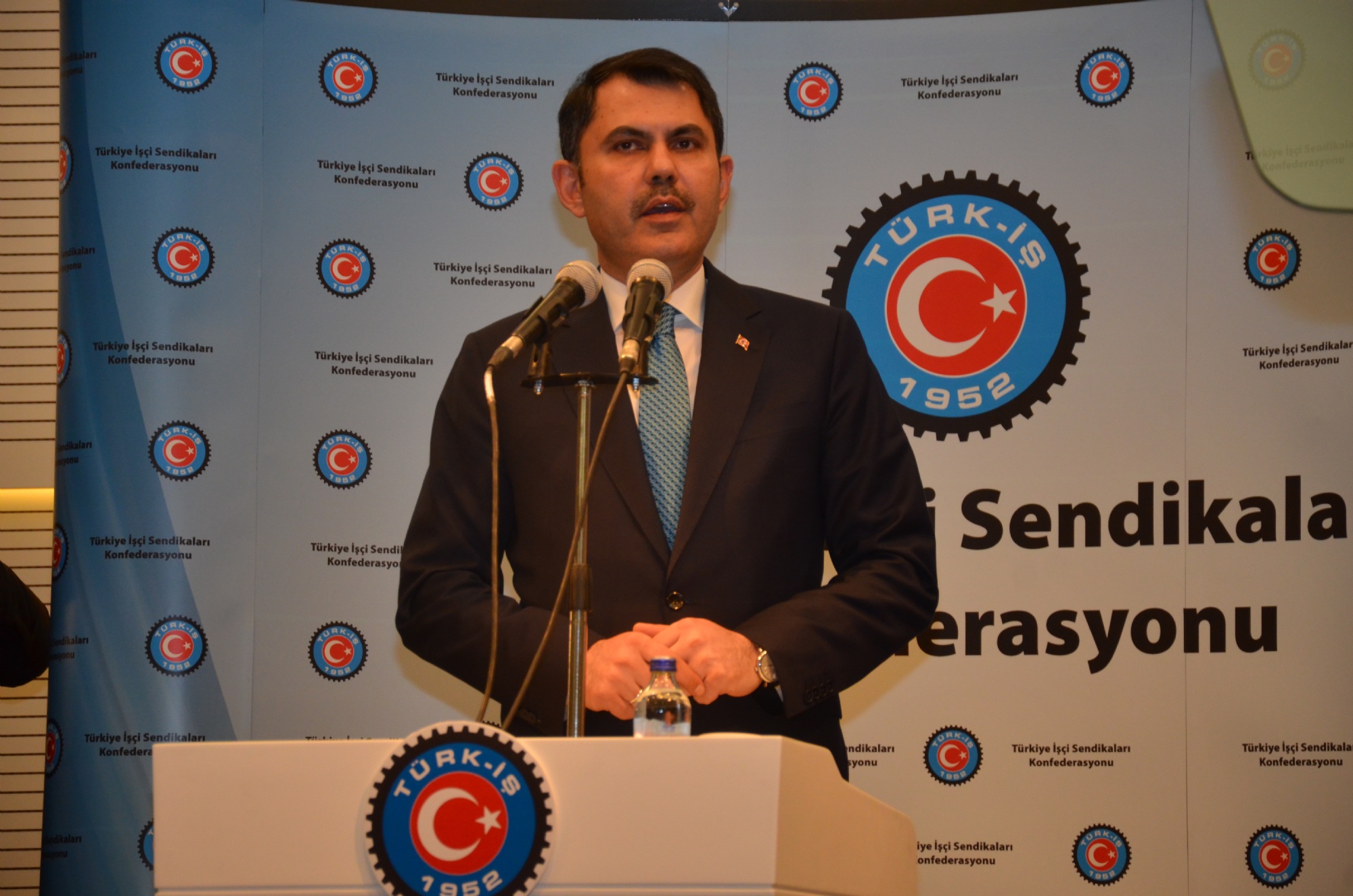 Bakan Kurum, TÜRK-İŞ'in 'Köklü Gelenek, Vizyonlu Gelecek' sloganıyla 70 yıldır yüz binlerce işçi, emekçinin dertleriyle, sorunlarıyla ilgilendiğini belirterek TÜRK-İŞ Genel Başkanı Ergün Atalay'a teşekkür etti.