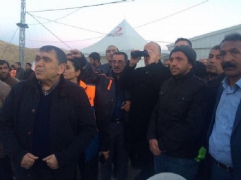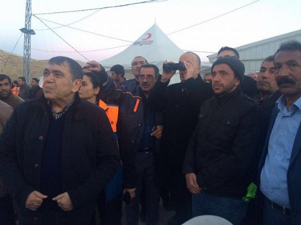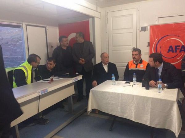 Göçük altında kalan işçilere ulaşmak için olay yerinde bulunan arama kurtarma ekiplerinin çalışmalarını izleyen Akçul, yetkililerden bilgi aldı ve madenci yakınlarıyla görüştü.