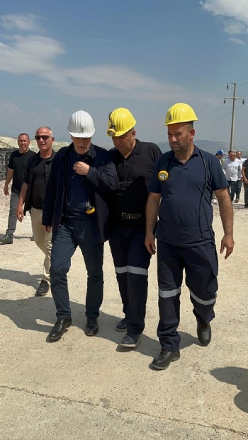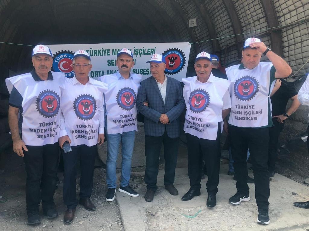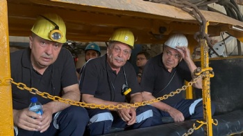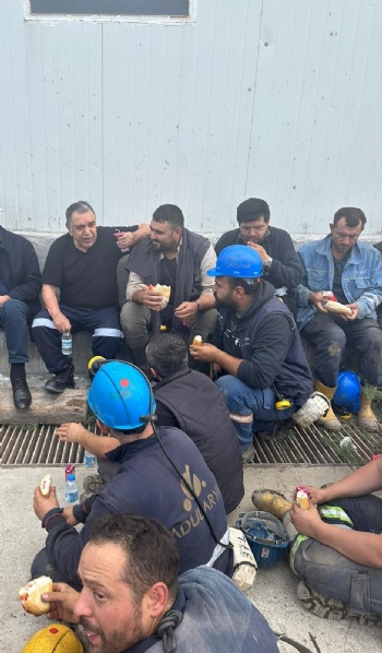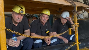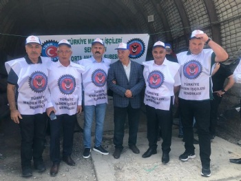 Eskişehir Doruk Madencilikte çalışan ve beş gündür açlık grevinde olan üyelerimiz, yeraltında sürdürdükleri açlık grevini yerüstünde oturma eylemine taşıdı. Genel Başkanımız Nurettin Akçul, üyelerimizin sorunlarını çözmek üzere, ilgili bütün makamlarla ve yetkililerle görüşmüş, dün Türk-İş Genel Başkanı Ergün Atalay ile de bir toplantı gerçekleştirmişti. Bugün de Türk-İş Genel Başkanı Ergün Atalay ile birlikte grevdeki üyelerimizi ziyaret eden Genel Başkanımız Akçul, yaptığı açıklamada 'Türk İş Genel Başkanımıza desteğinden ötürü teşekkür ediyoruz. Birlikte kanat çırpmanın en güzel örneğini burada yaşadık. Yeraltındaki açlık grevimizi sona erdirip, haklarımız ödeninceye kadar yerüstünde bekleyeceğiz. Buradaki sorunlar çözüldü gibi ama mücadelemiz bitmedi. TMSF'nin yükümlülükleri var. TMSF'den burayla ilgili sorun çözülse bile diğer alacaklarımız var. TMSF'nin yakasından elimizi çekmeyeceğiz. Bize yeni bir sayfa açtırmasınlar, zorlamasınlar ve haklarımızı biran önce versinler. Hepinizden Allah razı olsun. Allah'a emanet olun' dedi.