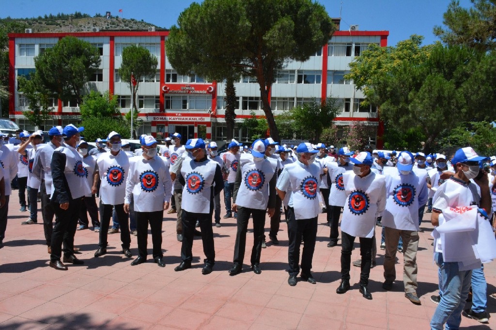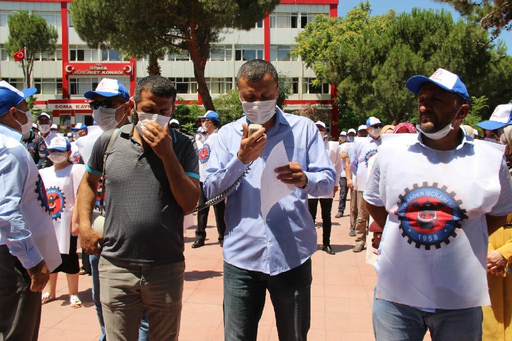 Cengiz Topel Meydanı'nda düzenlenen eylemde maden işçileri adına konuşan mağdur işçilerden Mustafa Güllü yaptığı konuşmada : 'Bizler Uyar Madencilik AŞ'de çalışmakta iken ocakta meydana gelen iş kazaları sonucu kapanan ve Soma Kömür İşletmeleri 13 Mayıs 2014 tarihinde meydana gelen iş kazasından dolayı işten çıkarılan mağdur maden işçileriyiz. Ocağımızın ruhsatı ile Türkiye Kömür İşletmeleri Genel Müdürlüğünce Rödovans ilişkisi altında hukuki ilişki gerçekleşmiştir. Şirketten kıdem tazminatlarımızı almak yasal yollardan mümkün olmamıştır. Ancak havzamızda yaşanılan Soma faciasından sonra, bu havzada yaşanan tüm olaylarda barışçıl şekilde çözüm arayışları çerçevesinde çalışmalar yürütmekteyiz. Yapılan girişimler sonucu Enerji Bakanlığının da katkılarıyla Soma Kömürleri'nde mağdur olan işçi arkadaşlarımıza bir nebze olsun çözüm bulunmuştur. Biz Uyar Madencilik ve Soma Kömür İşletmeleri Geventepe, Atabacası ve Işıklar çalışanları ise görmezden gelindik. Bizler de TKİ'nin sorumlu olduğu kömür sahalarında çalışıyorduk. İşsiz kaldık. Hiçbir hakkımız ödenmeden işten atıldık. Talebimiz açık ve net. Buradan bizi yönetenlere sesleniyoruz. 7 yıldır alamadığımız kıdem tazminatlarına bir çözüm üretin. Dünyanın en zor işini yapan biz maden emekçilerinin hakkını kimse yemesin. Bu üretimde yorgunluk var, alın teri var, yaralanma var, maden şehitlerimiz var. Artık sesimizi duyun. Bizler borç para istemiyoruz. Hibe istemiyoruz, dilenmiyoruz. Anamızın ak sütü gibi helal olan, devletimiz için ürettiğimiz fedakarca çalışmamızın, emeğimizin karşılığı olan hakkımızı istiyoruz' dedi.