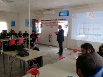 Genel Eğtm. ve Araş. Sekreteri Ahmet Çümen ise sendika yönetimi olarak göreve geldikleri günden beri sistemli, programlı bir biçimde yüz yüze eğitim gerçekleştirdiklerini ifade ederek “ Türkiye Maden İşçileri Sendikası olarak eğitim çalışmalarımıza özel bir önem veriyoruz. İşyerlerimizde taban eğitim seminerlerimizi bir program çerçevesinde gerçekleştiriyoruz.