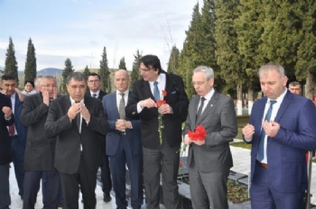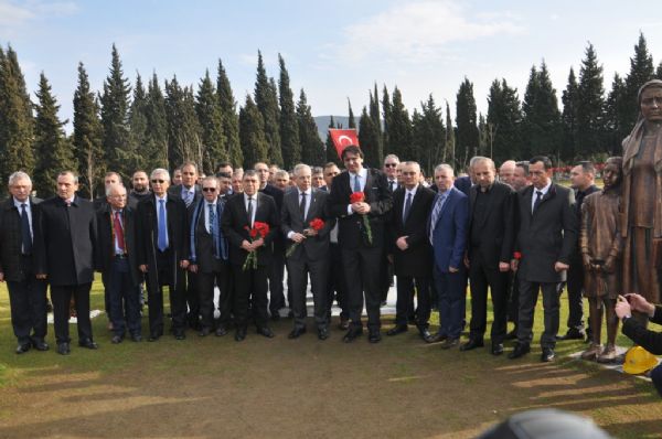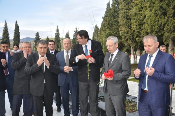 Alman Maden Kimya Enerji İşleri Sendikası Genel Başkanı Michael Vassilliadis, yönetim kurulu üyeleri Michael Mersmann, Susanne Nieden, Peter Schrimpf, Norbert Maus ,Dieter Mantwill, IndustriALL Küresel Sendikası Genel Sekreter Yardımcısı Kemal Özkan ile birlikte ilk olarak Soma Belediye Mezarlığı'ndaki madenci şehitliğini ziyaret etti ve mezarlara karanfil bıraktı. Şehitlik ziyaretinin ardından yapımı tamamlanan modern Halk Eğitim binasında incelemelerde bulunularak, konferans salonunda bir program düzenlendi.