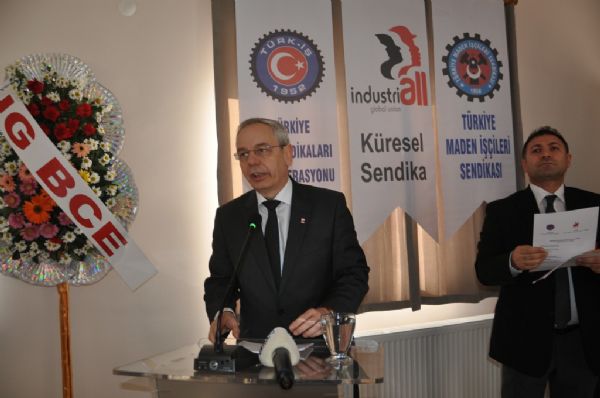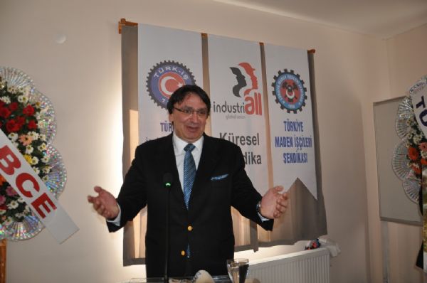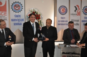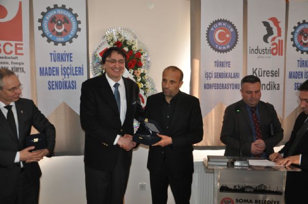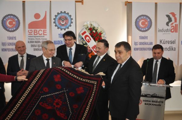 IndustriALL Küresel Sendikasının Genel Sekreter Yardımcısı Kemal Özkan da "143 ülkede 50 milyondan fazla üyeyi temsil eden sendikamız adına selamlıyorum. 13 Mayıs bir milat oldu. Soma, 13 Mayıs’tan sonra dünyanın vicdanı oldu. Herkesin yüreği Soma ile birlikte attı. Şehitlerimizin kabirlerini ziyaret ederek onlarla ağladık. Zorluk hala geçmiş değil. Hepimizi çok önemli görevler bekliyor. Onların aileleri ve yakınlarının geleceklerini belli bir ölçüde rahatlatmak için çalışmamız gerekiyordu. Türkiye Cumhuriyeti burada çok büyük bir dayanışma örneği gösterdi. Önümüzde önemli bir iş cinayeti vardı. Sorumluların yargı önüne çıkarılmasını talep ettik. Hala somut bir adım atılamaması içimizi buruk tutuyor. Yargı sürecinin bir an önce hızlandırılması ve bizlerin ıstırabının en aza indirilmesi için sorumluların cezalandırılmasını görmek istiyoruz. İnsan hayatından değerli hiçbir şey yok. Sayısı bir bile olsa bizim için çok önemli. Türkiye’de madenciliğin ekonomisinde çok ciddi problem var. Kar hırsı insan hayatının ve sağlığının önüne geçiyor. Bu kabul edilemez. Her madenci evinden çıktıktan sonra aynı güvenlikle geriye dönebilmeli. Taşeronluk ve rödevans sistemleri Türkiye’de madencilik sektörünün hala sıkıntısı olmaya devam ediyor. Madencilik alanında bilimsel olarak bakıldığında her iş kazası önlenebilir. Türkiye bunu yapabilir. Dünyada 10 bin madenci kardeşimizi her yıl kaybediyoruz. Madencilerin hayatı, güvencesi, sağlığı bir numaralı öncelik taşıyor. Bu eser son derece önemli. Dışarıdan görünce son derece gurur duydum. Madende çalışmaya başlayacaklara madende nasıl hakları olduğunu anlatabilecek alt yapıyı verebilmemiz lazım. Biz burada her türlü deneyimi ve bilgimizi sizlerle paylaşmaya hazırız. Binanın yapımına emek veren herkese teşekkür ediyorum. Gelecek kuşakların sorumluluğu üzerimizde bu nedenle birlikte çalışmaya devam etmemiz lazım" ifadelerini kullandı.