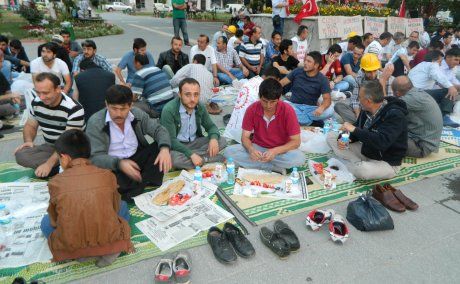 İŞSİZ KALAN 600 MADENCİ, EYLEM ALANINDA İFTAR YAPTI