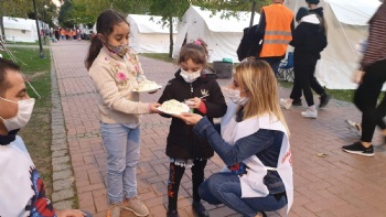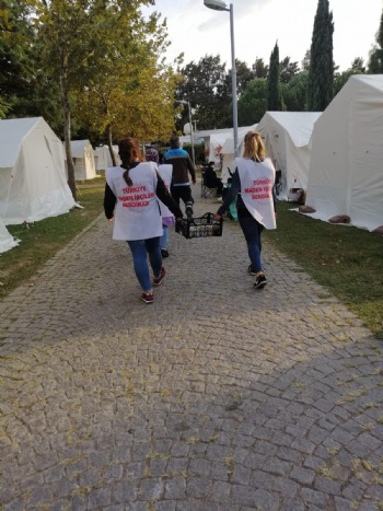 Yardım çadırında yemek, soğuk-sıcak içecek, battaniye ve dezenfektan dağıtımının devam ettiğini söyleyen diğer misafirhane çalışanımız Gülşah İnal ise ' Bizler buraya depremzedeler için geldik. Onlara bir nebze olsun yardımcı olabiliyorsak ne mutlu bize. Hayatını kaybedenlere Allah'tan rahmet diliyor, yaralılara acil şifalar diliyoruz. Mağdur olan vatandaşlarımızın da en kısa zamanda evlerine yerleşmelerini umuyoruz' dedi.