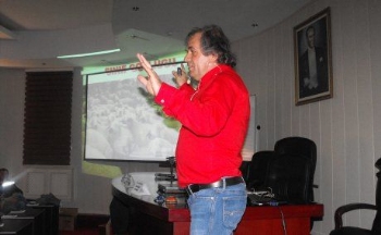 Gürbüz'den sonra kürsüye sendikamız eğitim müdürü Dr. Fikret Sazak geldi. Sazak işçilere Temel Sendikacılık anlattı.