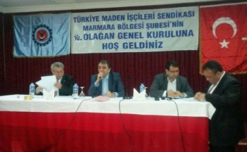 Değerli Delegeler, Değerli Konuklar, 2014 yılı, işçiler ve özellikle biz maden işçileri için acı dolu bir yolu. İş cinayetleri ve facialar ardı ardına geldi. 13 Mayıs'ta Soma'da ülkemizin en büyük maden faciasında 301 kardeşimizi şehit verdik. Daha sonra, Ermenek'te 28 Ekim'de 18 maden işçisini yitirdik. Bir kez daha buradan bütün şehitlerimize Allah'tan rahmet diliyorum. Allah bir daha böyle facialar, acılar yaşatmasın diyorum. Benden önce şube başkanımız da vurguladı. Genel Kurulumuzu kadınlarımız açısından anlamlı bir günde gerçekleştiriyoruz. 8 Mart Dünya Emekçi Kadınlar Günü. Bugün bütün kadınlara ithaf edilmiş. Çünkü bütün kadınlar emekçidir. Çünkü kadın bir yerde çalışmasa da ailesinin, evinin ücretsiz işçisidir. Evinin emekçisidir. 8 saatlik iş günü mücadelesinin ateşini yakan da kadın emekçilerdir. Amerika'da on dokuzuncu yüzyıl, büyük bir tekstil işletmesi ve kadınlar çalışıyor, gün doğumundan gün batımına kadar çalışıyorlar, ara dinlenmesi yok, hafta tatili yok, hamile kalan işten çıkartılıyor, kadınlar bu insanlık dışı çalışma koşullarına karşı çıkıyorlar, makul çalışma saatleri, hafta tatili istiyorlar, patron hayır diyor, direnişe geçiyorlar, kendilerini fabrikaya kapatıyorlar. Direniş sürerken bir gece hain eller molotofları dört bir yandan fabrikanın içine atıyor. Tekstil ürünleri yanıyor. Uykudaki 128 kadın da yanıyor. 128 kadın bedenleriyle, 8 saatlik iş günü mücadelesinin ateşini yakıyorlar. Bu olay bütün dünyada işçileri çok etkiliyor. Mücadele bütün dünyaya yayılıyor. Bugün kullandığımız haklara canlarıyla katkı veren bu emekçi kadınları saygıyla anıyorum. Bir kez daha bütün emekçi kadınlarımızın gününü kutluyorum.
