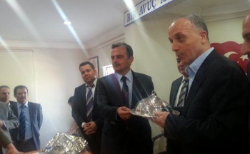 Sendikamız Yatağan Şube Başkanı Süleyman Girgin, ziyaret ve basın açıklamasının ardından Ergün Atalay'a çiçek ve gümüş şekerlik hediye etti.