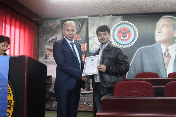 Konuşmanın ardından üyemiz maden işçilerine katılım sertifikası verildi.