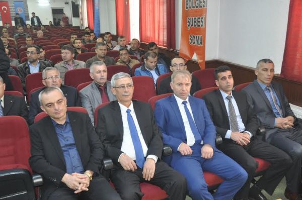Sendikamız ile Türk-iş, Soma’da ortaklaşa bir eğitim semineri düzenledi. Genel iş sağlığı ve Güvenliği konulu seminere Türk-İş Genel Eğitim sekreteri Nazmi Irgat, Türk-İş 3. Bölge Temsilciliği Başkanı H. Hüseyin Karakoç, Sendikamız Mali Sekreteri Zekeriya Aydın, Genel Eğtm.ve Araşt. Sekreteri Ahmet Çümen, Sendikamız Ege Bölgesi Şube yöneticileri ve temsilcileri, Soma Kaymakamı Ahmet Altıntaş, Soma Belediye Başkanı Hasan Ergene, Tes-İş Sendikası Şube Başkanı Bedri Demiraslan ve üyemiz maden işçileri katıldı.