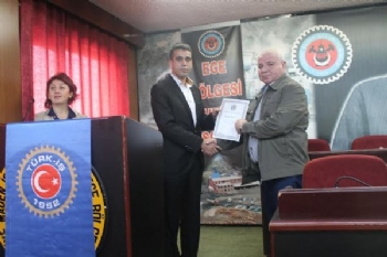 Uzman hocaların katılımıyla gerçekleşen ve iki gün süren seminerin kapanış konuşmasını Sendikamız Eğtm ve Araşt. Sekreteri Ahmet Çümen yaptı. Çümen konuşmasının sonunda “ Bu eğitimlere gereken önemi veren Türk-İş Başkanımız Ergün Atalay ve Türk-İş Yöneticilerine, sendikamız genel merkez yönetimindeki arkadaşlarıma, Ege şubemiz başkan ve yönetimine, katılımcı arkadaşlara, hocalarıma ve emeği geçen herkese çok teşekkür ediyor saygılarımı sunuyorum” dedi.