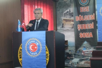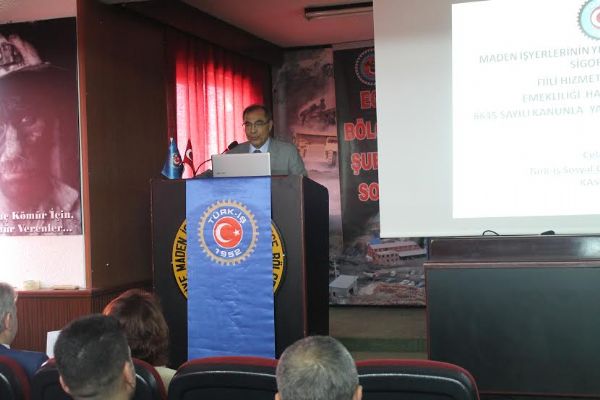 “ Biz Türk-İş olarak bu tür seminerlerimizin 16’ncısını bugün Soma’da gerçekleştiriyoruz. Gayemiz işçilerimizi bilgilendirmek ve onların her türlü sosyal güvence haklarının sağlanmasını temin etmek. Bugün burada da bu konulara değiniyoruz.