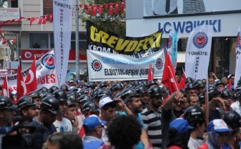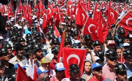 BİNLERCE MADENCİ : ' ÖZELLEŞTİRMEYE, TAŞERONA, İŞ CİNAYETLERİNE HAYIR! KAMULAŞTIRMA İSTİYORUZ' DİYE HAYKIRDI