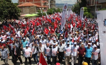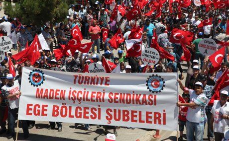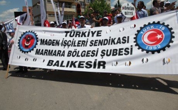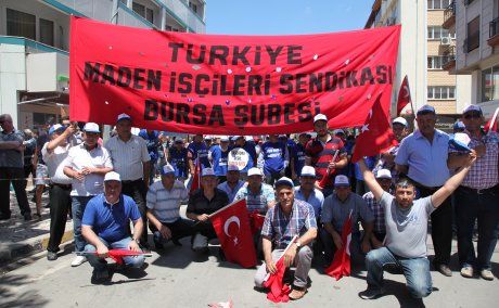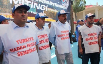 Sendikamızın şubelerinden otobüslerle taşınan binlerce maden emekçisi de mitingde yerlerini alırken, yaklaşık 1 yıldır özelleştirmeye karşı direnen sendikamız üyesi maden işçileri ile Tes-İş sendikası üyesi işçiler, Yatağan ve Milas'tan gelerek kitlesel biçimde Soma'daki mitinge katıldı.
