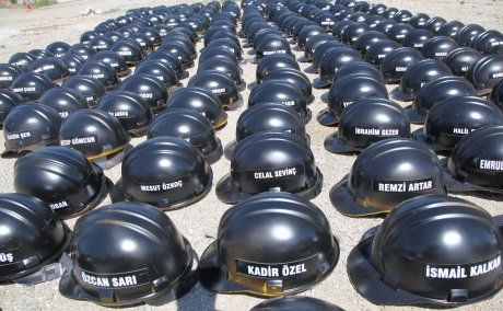 Miting platformunun önüne 301 şehit madencinin isimlerinin yazılı olduğu siyah baretleri giyen, maden emekçileri yerleşti. Şehitlerin ailelerine bu baretler miting sırasında verildi.