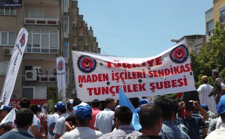 Mitinge sendikamızın örgütlü olduğu Soma Kömürleri, İmbat ve ELİ'de çalışan üyelerimiz ile şehit madencilerinin aileleri ve Soma'lılar katıldı.