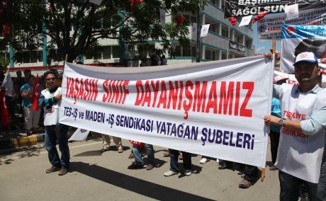 301 emekçi kardeşini şehit vermiş; acılı, ama bir o kadar da öfkeli, Soma kömürlerinde, İmbat'ta, Eli'de çalışan, canım kardeşlerim, sınıf kardeşlerim, özelleştirmeye karşı, aylardır iki cephede direnen,işçi sınıfının onuru, gururu Yatağan maden ve enerji işçisi kardeşlerim.