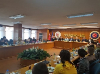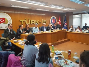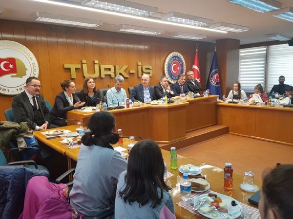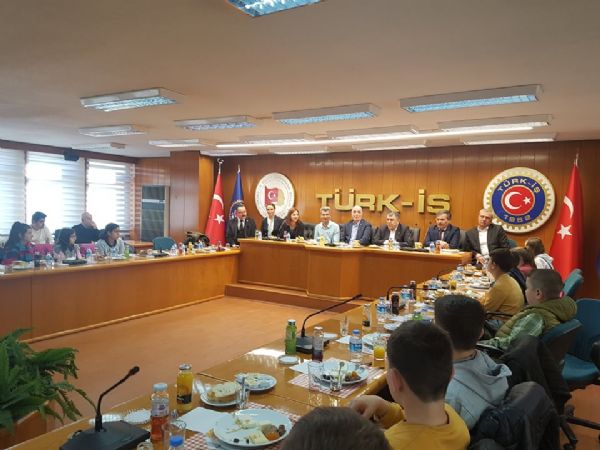 Soma maden şehitlerinin çocuklarının da bulunduğu Soma Ayşe Temizel Ortaokulu öğrencileri ve öğretmeleri, sendikamızın da katkılarıyla Ankara’ya geldi. Türk-İş Genel Başkanı Ergün Atalay, sendikamız Genel Başkanı Nurettin Akçul , Genel Başkan yardımcısı Şeref Zeyrek, Genel Sekreter Tamer Küçükgençay ve Genel Mali Sekreter Zekeriya Aydın, öğrencilerle Türk-İş Genel Merkezde kahvaltıda bir araya geldi.