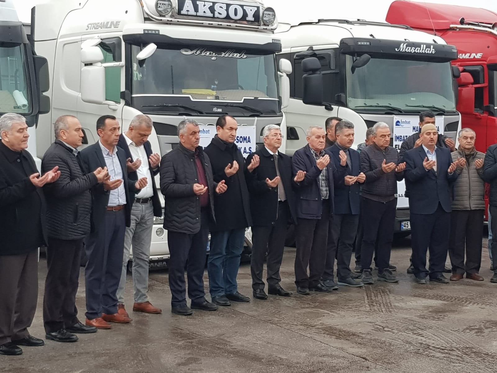 Törene sendikamız Genel Mali Sekreteri Zekeriya Aydın, Ege Bölgesi Şube Başkanı Recep Satır ve Yönetim Kurulu Üyeleri, Soma Kaymakamı Ahmet Altıntaş, AK Parti Manisa Milletvekili Mehmet Ali Özkan, Türkiye Kömür İşletmeleri Ege Linyitleri İşletmesi Müdürü İsmail Ceren, İmbat Madencilik Genel Koordinatörü Gökalp Büyükyıldız, Soma Nakliyeciler Kooperatifi Başkanı Mehmet Yağcı, Ak Parti İlçe Başkanı Mehmet Ali Aksoy katıldı. Duaların okunduğu törende bir konuşma yapan AK Parti Manisa Milletvekili Mehmet Ali Özkan, "Geçtiğimiz günlerde önce Manisa Akhisar ve Kırkağaç merkezli deprem yaşadık. Hamdolsun orada hiçbir can kaybımız olmadı. Ancak Cuma akşamı Elazığ Sivrice merkezli 6,8'lik bir deprem yaşadık. Tabi oradaki depremin şiddeti Kırkağaç ve Akhisar'a göre maalesef şiddetliydi. Bugün itibariyle arama kurtarma faaliyeti sona erdi ve maalesef 41 vatandaşımız hayatını kaybetti. Depremin gerçekleşmesinden hemen 1-2 saat sonra tüm kamu kurumlarımız sivil toplum kuruluşlarımız koordineli bir şekilde arama kurtarma faaliyetlerine başladı. Gerek kamu kurumlarımız, gerek sivil toplum kuruluşlarımız gerekse bu alanda faaliyet gösteren sivil toplum kuruluşlarımızın çok güçlü bir dayanışmasını gördük. Bir yandan da Türkiye'nin her yerinden oradaki depremden etkilenen vatandaşlarımıza kardeşlerimize yardım yapmak üzere hızlıca faaliyet içerisinde giren hemşerilerimiz vatandaşlarımız sivil toplum örgütlerimiz oldu. Bunlardan bir tanesini de Soma'dan gerçekleştiriyoruz. Tabi Elazığ ve Malatya'da kış şartları buraya göre çok daha ağır. Geceleri hava sıcaklıkları -10,-15'lere kadar düştüğü oluyor. Bu anlamda orada en büyük ihtiyaç da yiyecek ve barınmanın yanında ısınma ihtiyacı. Soma'dan da İmbat Madencilik firmamız 100 ton kömür hazırladı. Nakliyeciler Kooperatifimiz de nakliyesini üstlendi. İnşallah kamyonlarımızı az sonra yola çıkaracağız. Hızlıca Elazığ'a varacaklar. Orada Sosyal Yardımlaşma Vakfı'na teslim edecekler ve hızlıca bu kömürler oradaki ihtiyaç sahiplerine ulaşmış olacak.Bir yandan da yine devletimiz Türkiye Kömür İşletmeleri(TKİ) tarafından AFAD'ın koordinasyonunda Sosyal Yardımlaşma Vakfı aracılığıyla Elazığ ve Malatya'da depremden etkilenen vatandaşlarımıza 30 bin ton kömür gönderme kararı verdi. Bu kömürün 20 bin tonu Soma'dan 10 bin tonu ise Tunçbilek'ten karşılanacak. Şuan kooperatifimizin kamyonları da kömürleri Soma maden ocağından sarmaya başladılar. İnşallah onlarda çok kısa bir süre içerisinde süratle deprem bölgesine ulaşmış olacak" dedi.