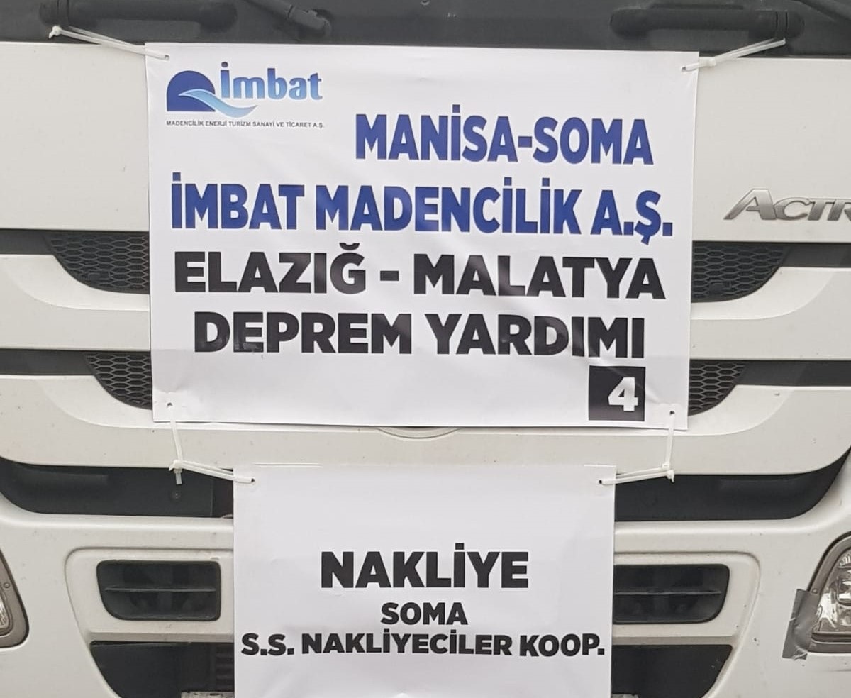 Türkiye Kömür İşletmeleri(TKİ) tarafından Soma ilçesindeki maden ocaklarından 30 bin ton kömür Elazığ ve Malatya'daki depremzedelere gönderilmek üzere yola çıktı. İmbat Madencilik tarafından da depremzedeler için 108 ton kömür gönderildi. Kömürlerin nakliyesini Soma Nakliyeciler ve Taşıyıcılar Kooperatifi ücretsiz olarak sağladı. Tunçbilek'ten Garp Linyitleri İşletmesi de 82 ton kömürü kendi vasıtaları ve imkanlarıyla deprem bölgesine gönderdi.