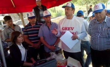 Kurulan grev çadırında üyelerimizle bir araya gelen sendikamız Genel TİS ve Mevzuat Sekreteri Hasan Hüseyin Gürbüz grevle ilgili olarak basın açıklaması yaptı. Gürbüz, yaklaşık 6 buçuk aydır devam eden toplu iş sözleşmesinde herhangi bir ilerleme kaydedilmediğini ve taşeron işçilere ödenen ücretler ve sağlanan kolaylıkların sendika üyelerine sağlanmadığını belirterek, 'Bizler yaşamak ve üretmek istiyoruz. Ancak insanca insana yaraşır şekilde üretmek ve yaşamak istiyoruz. Toplu iş sözleşmesinde taleplerimiz, iş sağlığı ve güvenliğine yönelik gerekli tedbirlerin alınması ve eşit işe eşit ücret ödenerek taşeron işçilere son verilmesiydi. Taşeron işçilere ödenen ücretlerin bizlere de ödenmesini talep ettik. Ancak işveren tüm taleplerimize kulak tıkadı. İşçilerimiz emeklerinin karşılığını alamıyor. Bizler de bu konularda her türlü adımı atmamıza rağmen ilerleme kaydedemeyince haklı taleplerimizi elde etmek için greve çıkmaya karar verdik. İşverenin her türlü adımına açık olduğumuzu da belirtiyor ve Soma olmak istemiyoruz' dedi.